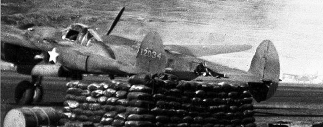 P-38E 41-2221 yellow 76, image from Attu, winter 1944-45