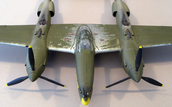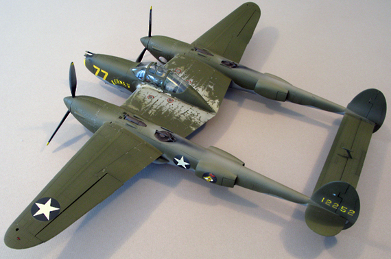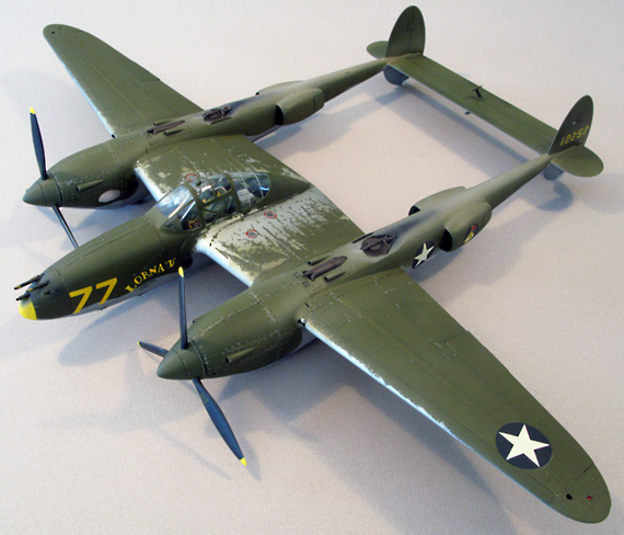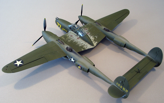 Issues: With the exception of the propellors, Trumperet's P-38L #2227 is a very accurate, easy to build kit. The Jerry Rutman 'mk 1' resin lower cowlings and boom radiators are not accurately shaped - JR's new resin looks perfect but wasn't available for this build. The modified Revell props are not accurately shaped although they are better than the kit props. The modified kit windscreen only approximates the early type P-38E windscreen (JR also apparently has a complete vacuform P-38EFG canopy, not available for this build).