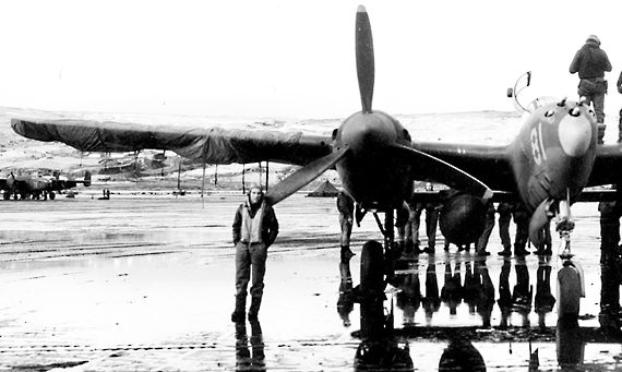 John Geddes standing by P-38E '81' at Adak, autumn 1942.