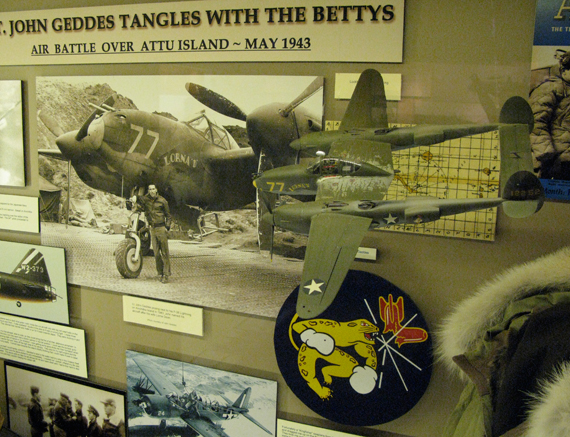 "As Lieutenant Geddes pressed his attack, the entire right side of his canopy blew up, apparently struck by a 20 mm shell. Geddes... nursed his barely controllable fighter back to Attu, where he ditched off the coast. Navy Lieutenant Ferguson landed his [OS2U] Kingfisher and pulled the grateful fighter pilot from the water."